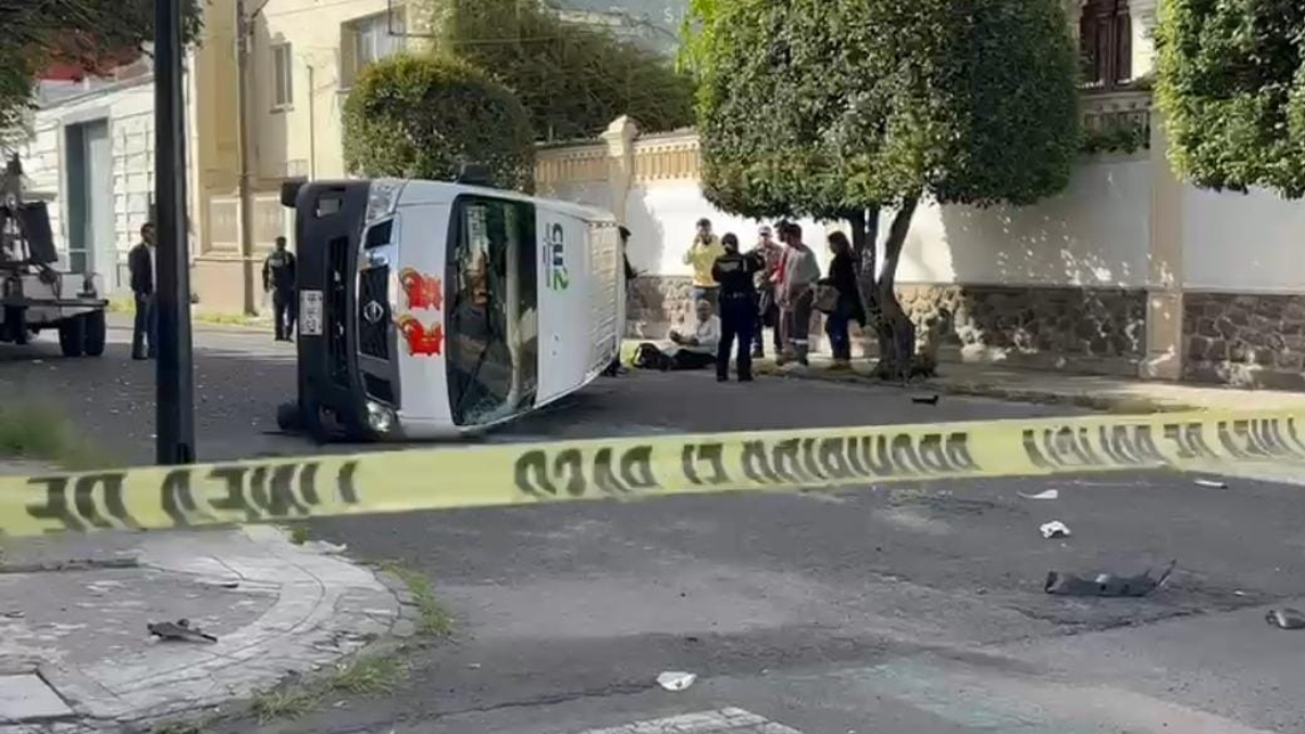 Un fuerte percance vial se registró la mañana de este lunes en el cruce de la 13 Sur y 21 Poniente, en calles del centro histórico de Puebla, tras la volcadura de una unidad del transporte público, lo que generó una intensa movilización policiaca.
