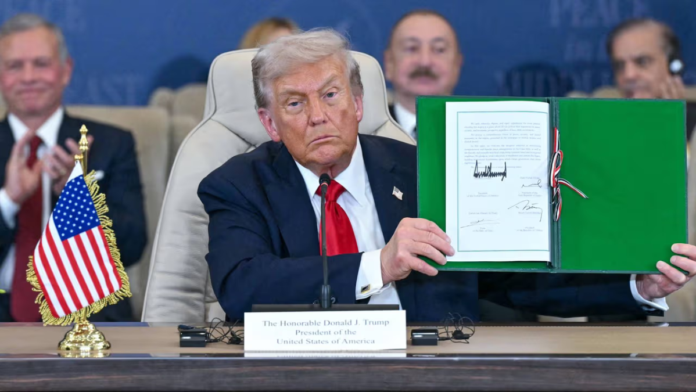 Ante los presentes, los líderes sellaron el documento que contiene el plan parafinalizar el conflicto iniciado en octubre de 2023. Trump calificó el pacto como “el más importante” que haya negociado.