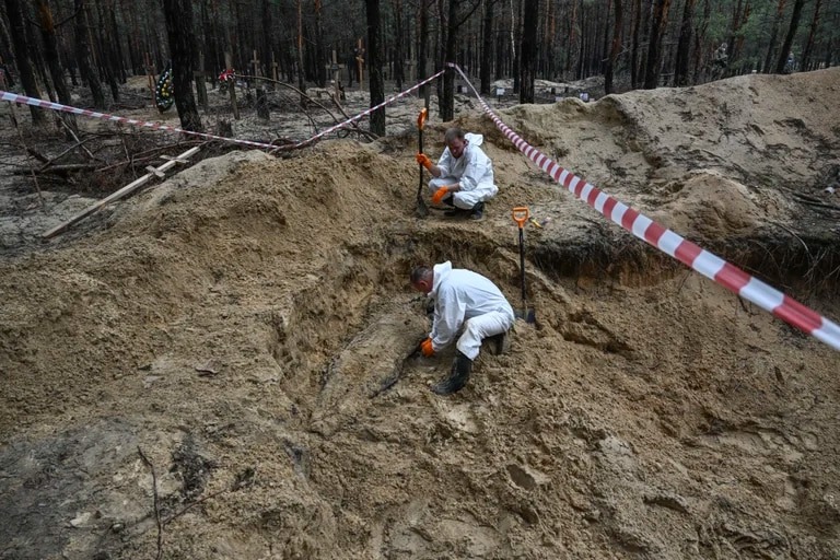 Ucrania denunció el hallazgo de más de 400 cuerpos con indicios de tortura en un bosque cerca de Izium, en Kharkiv, zona liberada de las tropas rusas.