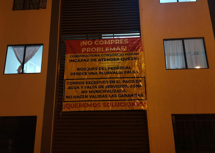 Ante la inconformidad ya se instalaron lonas en edificios y se presentaron denuncias formales ante Infonavit, además amenazan con cerrar la casa de ventas y el Periférico Ecológico.