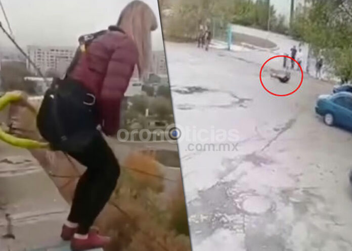 A través de redes sociales, se difundió un video en el que se observa a la víctima cuando salta al vacío, posteriormente se observa cómo el cable que la sujeta falla y ella se estrella contra el suelo y luego con la pared de una cerca.