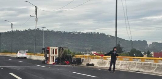 Vuelca camioneta en Periférico Ecológico; deja solo daños materiales
